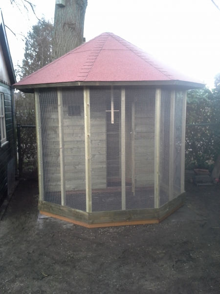 Vogel volière VM3-250 heeft een doorsnede van 250 cm. Het hok is opgedeeld in een buitenhok en een nachthok.