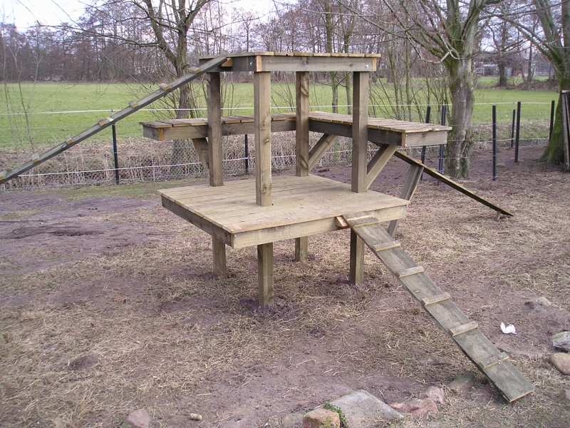 Geitenklimtafel van Douglashout 1,75m hoog. De geitenklimtafel bestaat uit 3 etages met trapjes.