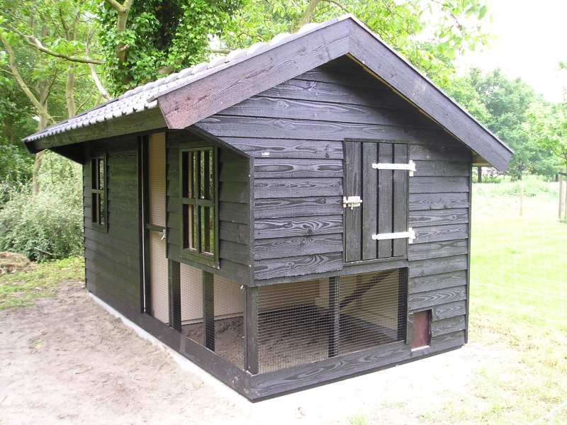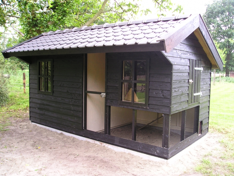 Dit mooi afgewerkte kippenhok, gemaakt van geïmpregneerd douglas, is een goede keuze wanneer u een gecombineerd dierenverblijf zoekt. Het verblijf bestaat uit een nachthok met ruime opening, een kippenren op stahoogte, en een binnen gedeelte voor grotere weidedieren. Ook dit laatste is goed bereikbaar via een tweedelige deur. Verder is er in dit gedeelte een raam en een opening aan de achterkant verwerkt. In het nachthok is een hangend legnest en een vaste zitstok te vinden. Ook is het mogelijk om de ruimte te ventileren d.m.v. het verschuifbare plexiglas, en het af te sluiten van de ren met een luikje. Het verblijf heeft een stevige hardhouten onder-regel, een luifel aan de voorzijde, en als dakbedekking dakpannen, die in verschillende kleuren beschikbaar zijn. Het is ook mogelijk om andere afmetingen aan te vragen. Wanneer u verder graag nog wat aanpassingen zou willen maken, kunt u dit in de offerte vermelden.